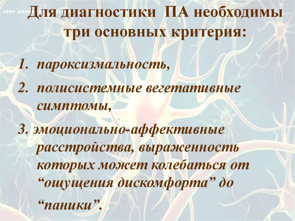 Для диагностики ПА необходимытри основных критерия: