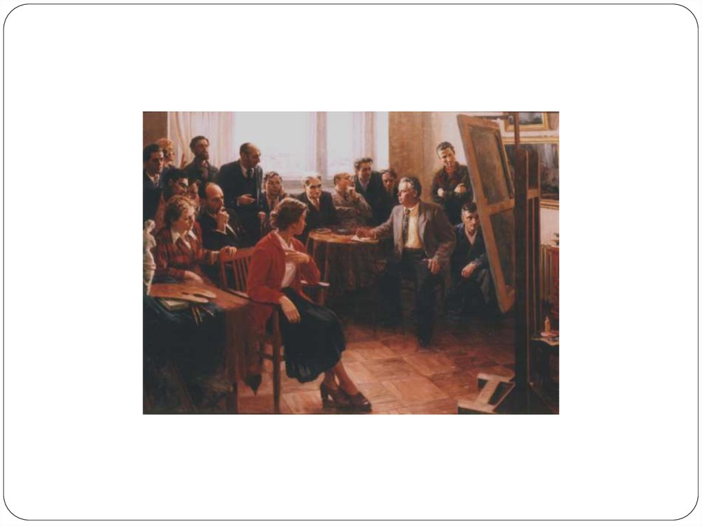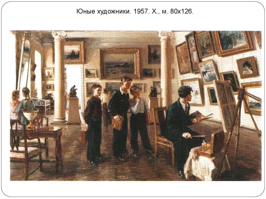 Юные художники. 1957. Х., м. 80х126.4. Натюрморт с кистями. 1984. Х., м. 65х120.