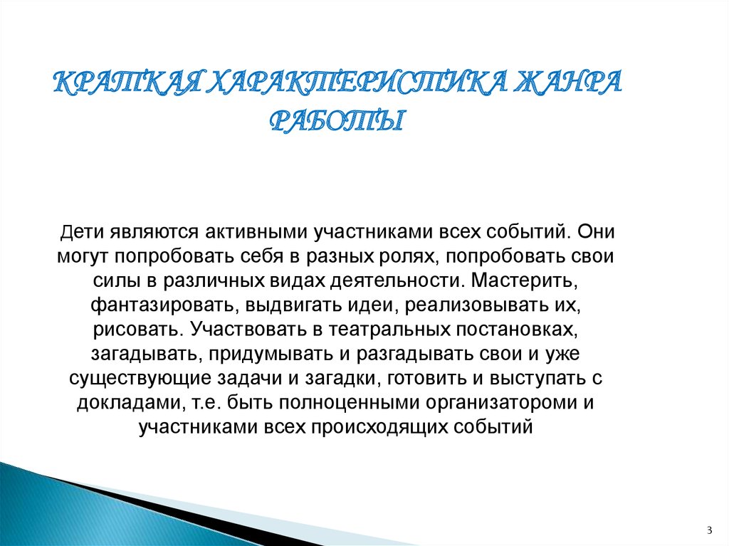 КРАТКАЯ ХАРАКТЕРИСТИКА ЖАНРАРАБОТЫ