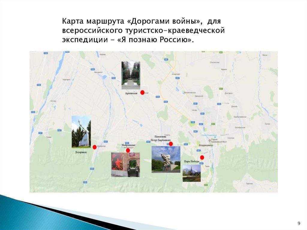 Карта маршрута «Дорогами войны», длявсероссийского туристско-краеведческой