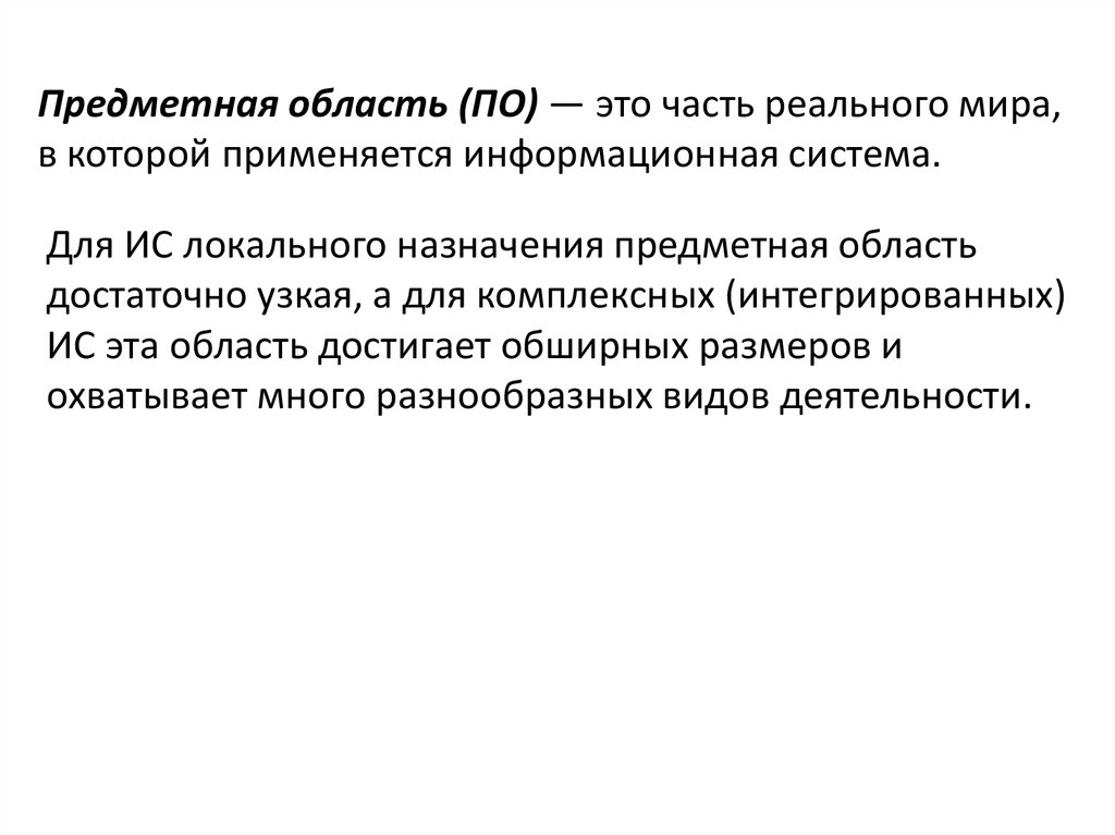 Предметная область (ПО) — это часть реального мира,в которой применяется информационная система.