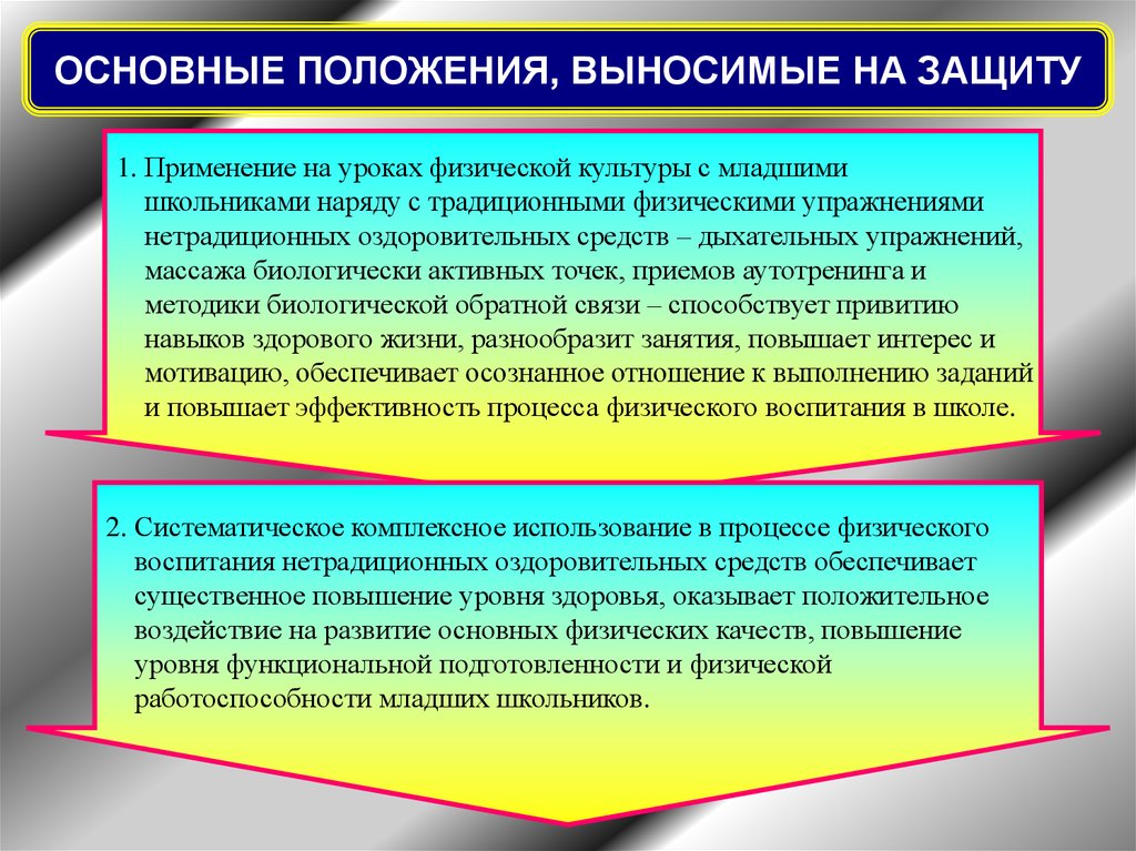 ОСНОВНЫЕ ПОЛОЖЕНИЯ, ВЫНОСИМЫЕ НА ЗАЩИТУ1. Применение на уроках физической культуры с младшими
