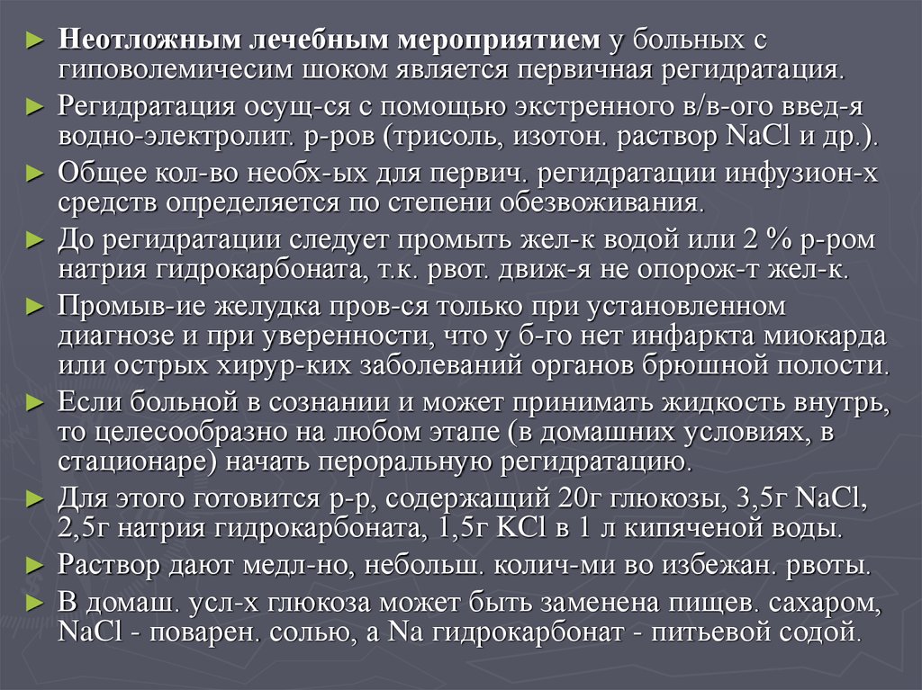 Гиповолемический шок при острых кишечных инфекциях