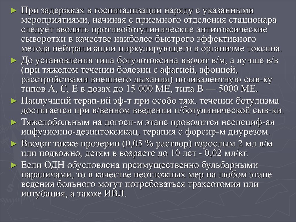нарушениях функций (при ботулизме, осложненных