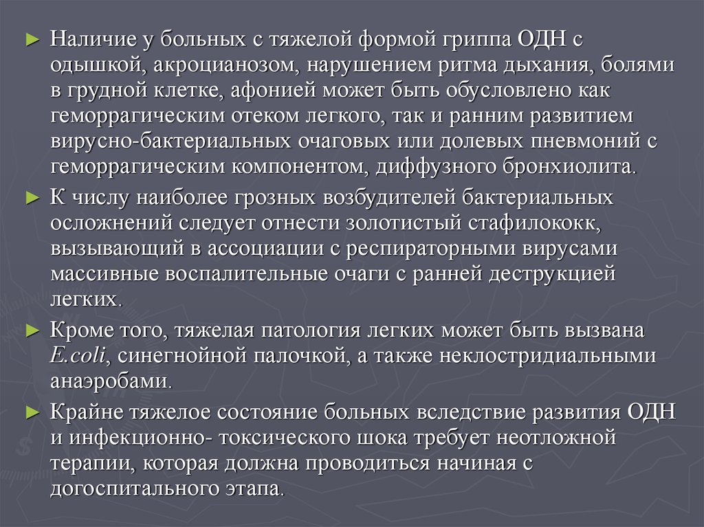 формах гриппа и др.);