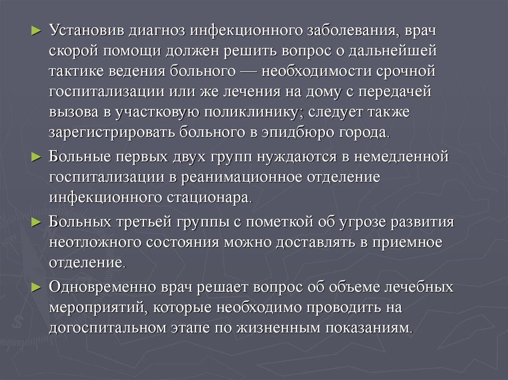 догоспитальной терапии у больных с инфекционными