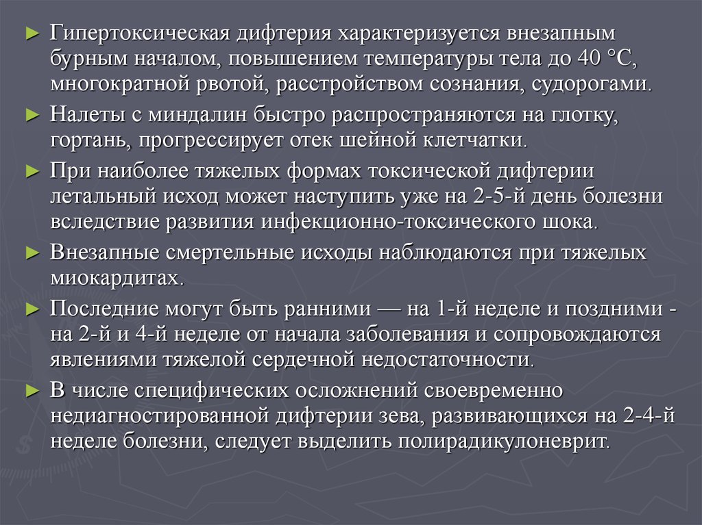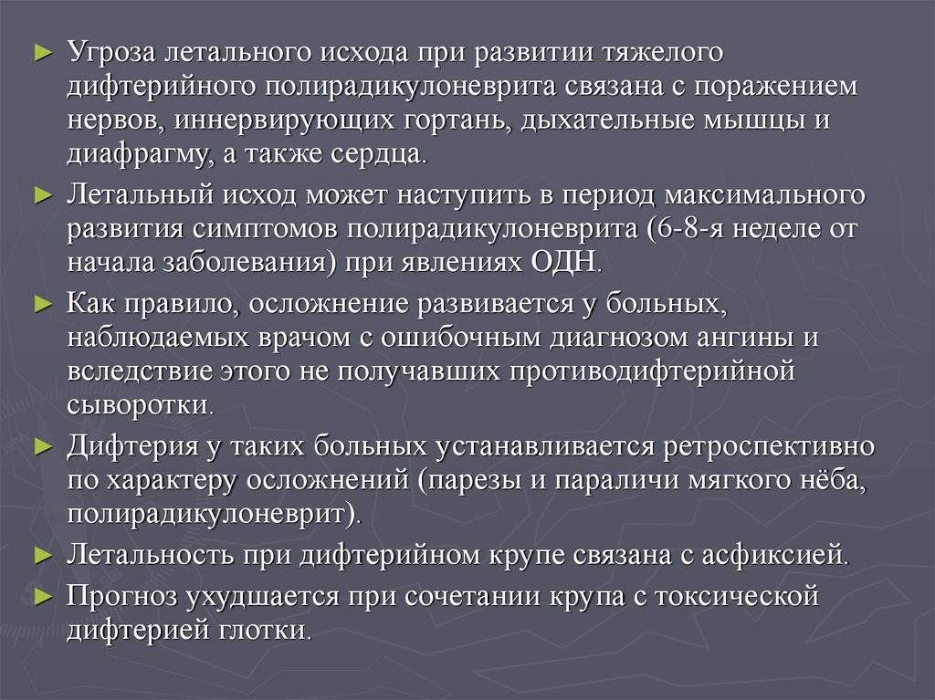 последующего прогрессирования вплоть до смертельного