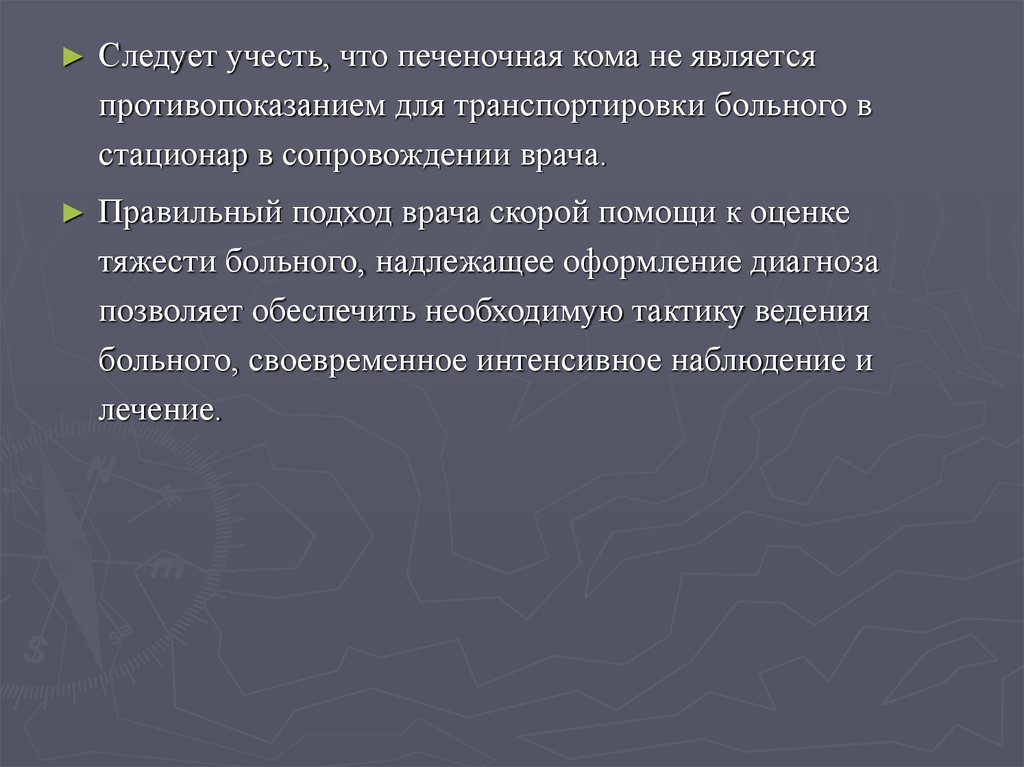 ► Кома не является противопоказанием для госпитализации.