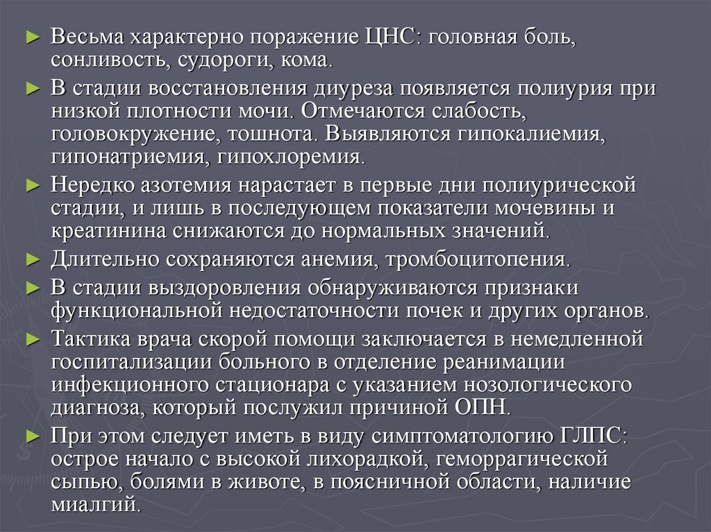 Проявляется синдромом ОПН и тяжелой общей