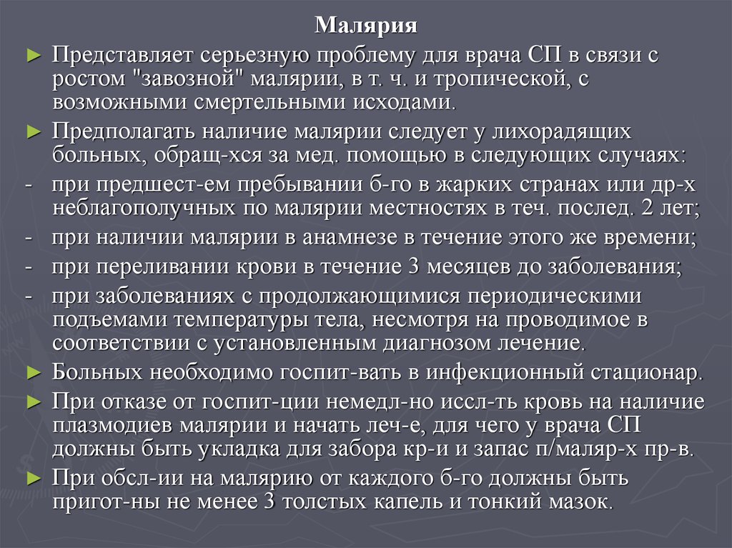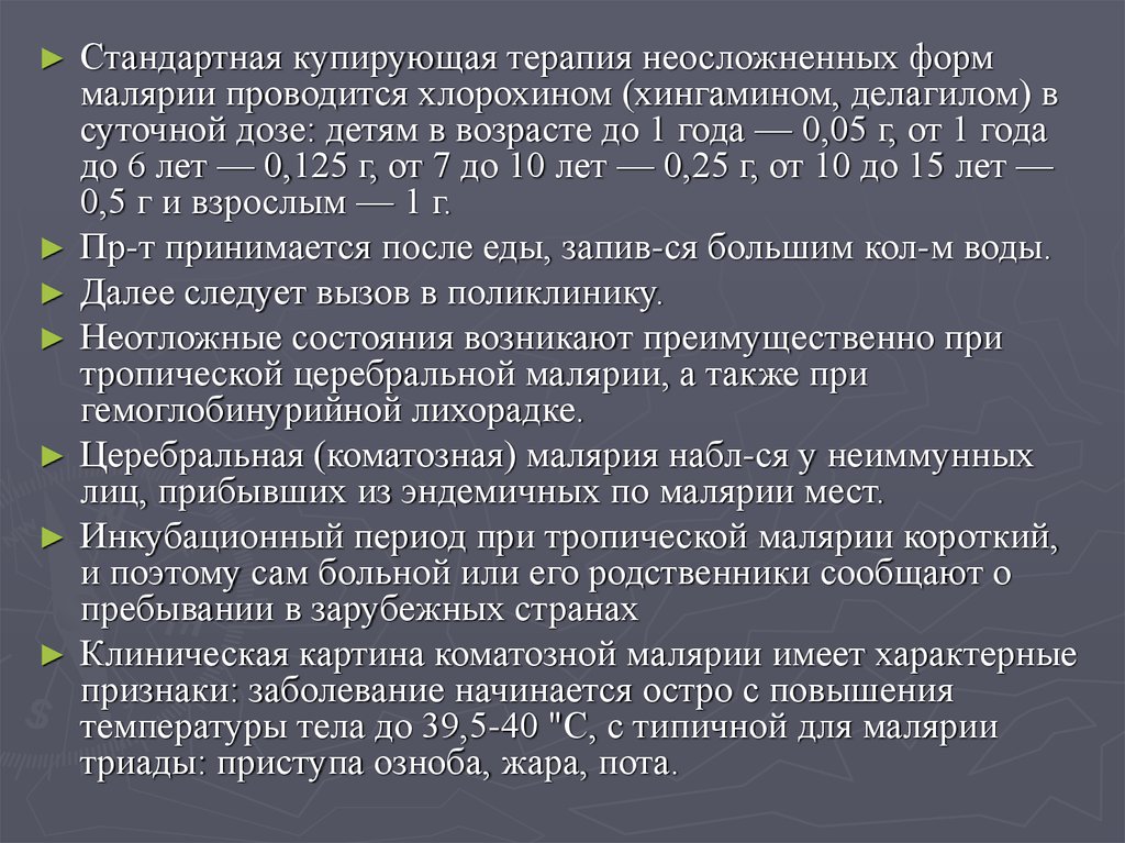 течения малярии.