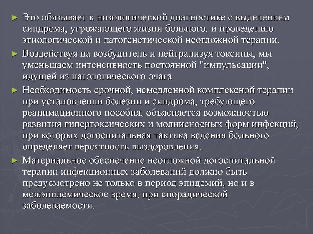 Необходимость срочной, немедленной комплексной терапии