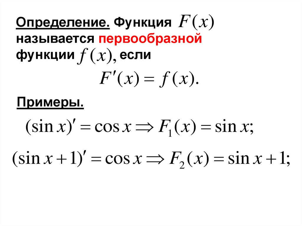 Таким образом, F ( x) C - этосовокупность всех первообразных от