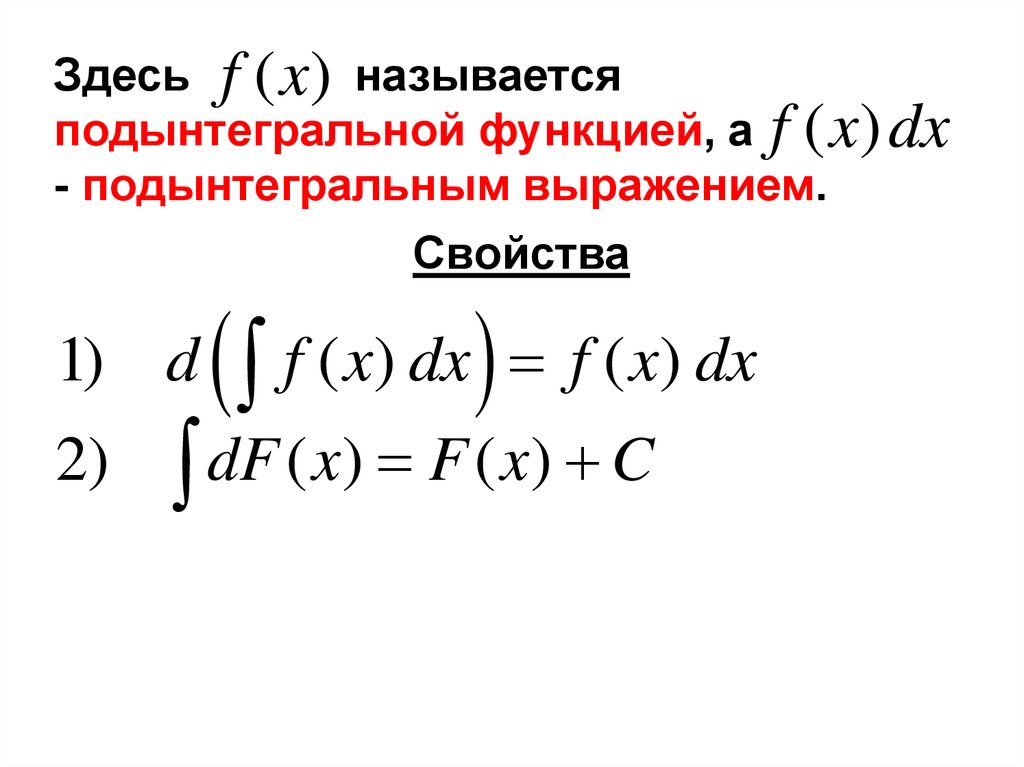 Здесь f ( x) называетсяподынтегральной функцией, а f ( x) dx