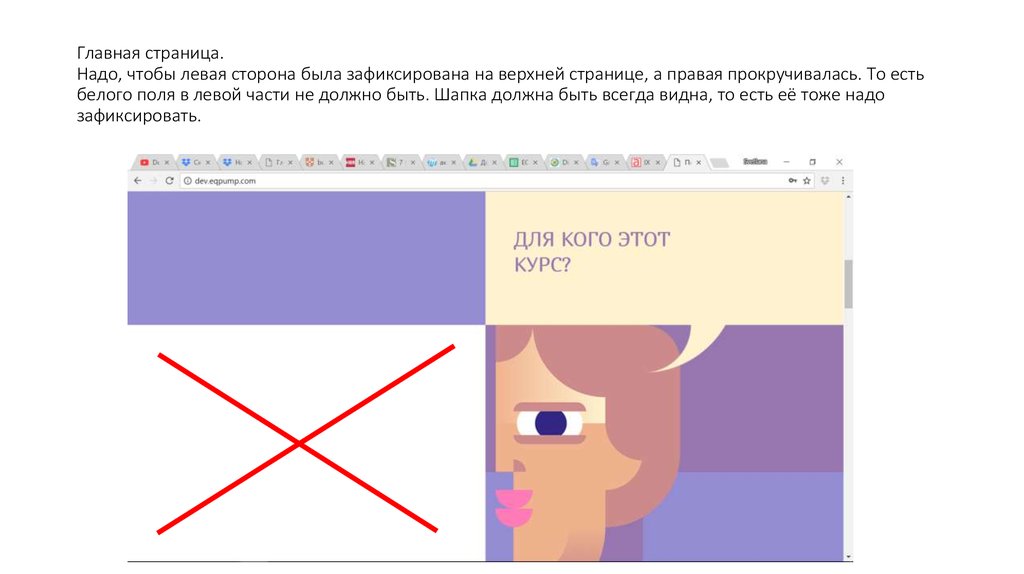 1. Главная страница. Надо, чтобы левая сторона была зафиксирована на верхней странице, а правая прокручивалась. То есть белого