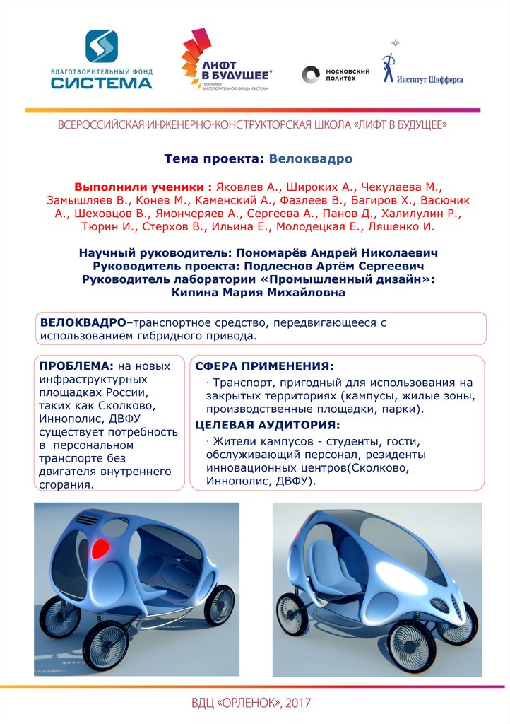 Тема проекта: ВелоквадроВыполнили ученики : Яковлев А., Широких А., Чекулаева М.,