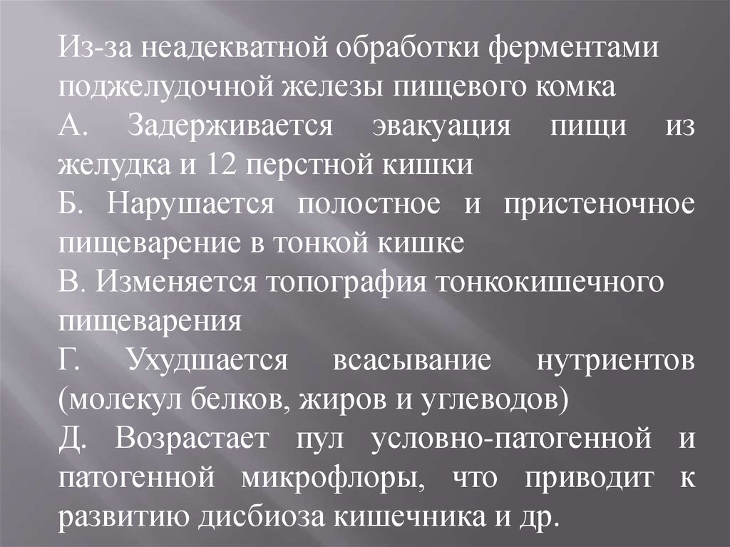 Из-за неадекватной обработки ферментамиподжелудочной железы пищевого комка