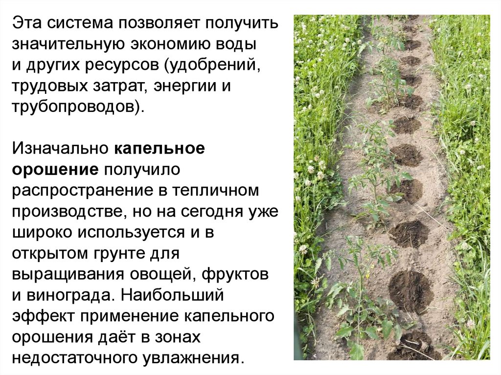 Капельное орошение - метод полива, при котором водаподаётся непосредственно в прикорневую зону