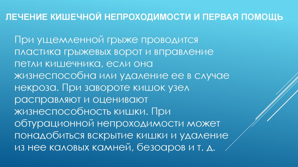 ЛЕЧЕНИЕ КИШЕЧНОЙ НЕПРОХОДИМОСТИ И ПЕРВАЯ ПОМОЩЬПри ущемленной грыже проводится