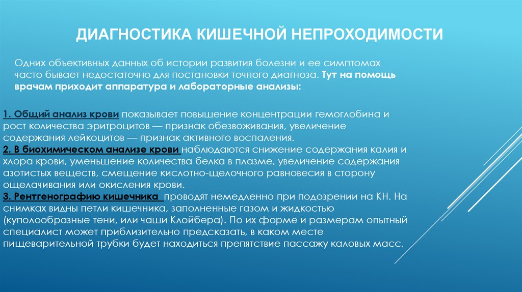 ДИАГНОСТИКА КИШЕЧНОЙ НЕПРОХОДИМОСТИОдних объективных данных об истории развития болезни и ее симптомах