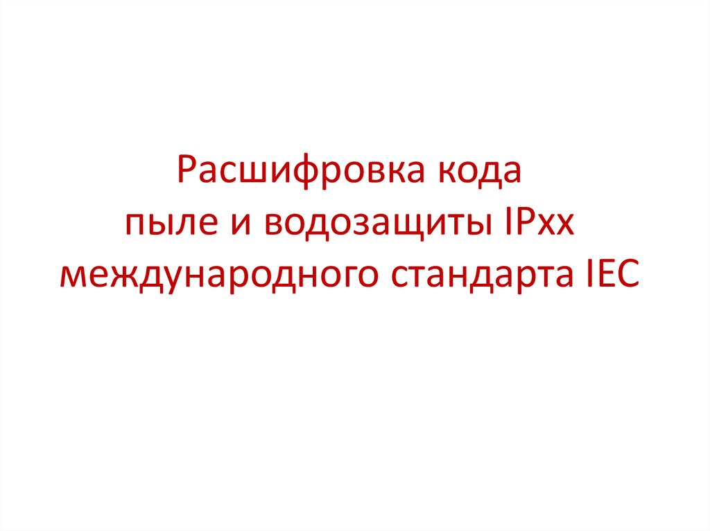 1. Расшифровка кода пыле и водозащиты IPxx международного стандарта IEC
