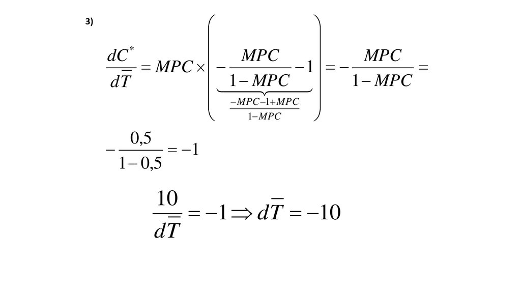 • Кривая совокупного спроса сдвинется вправо и равновесныйдоход сократится.