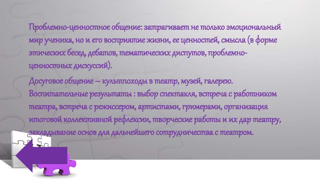 Досуговое общение – культпоходы в театр, музей, галерею.