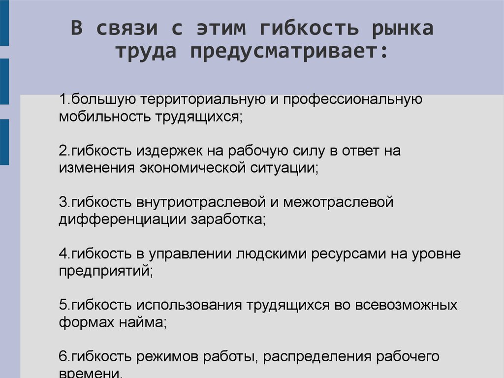 В связи с этим гибкость рынкатруда предусматривает: