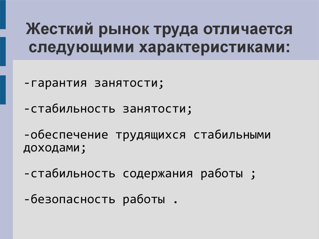 Жесткий рынок труда отличаетсяследующими характеристиками: