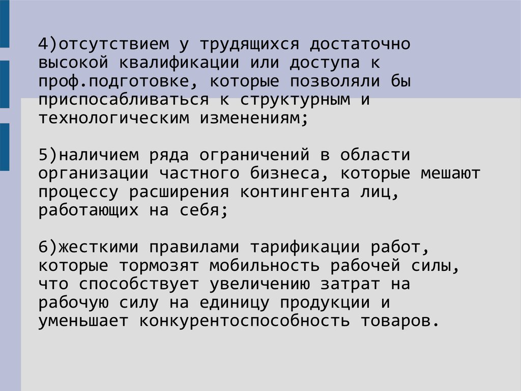 4)отсутствием у трудящихся достаточновысокой квалификации или доступа к