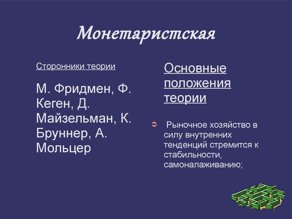 МонетаристскаяОсновные