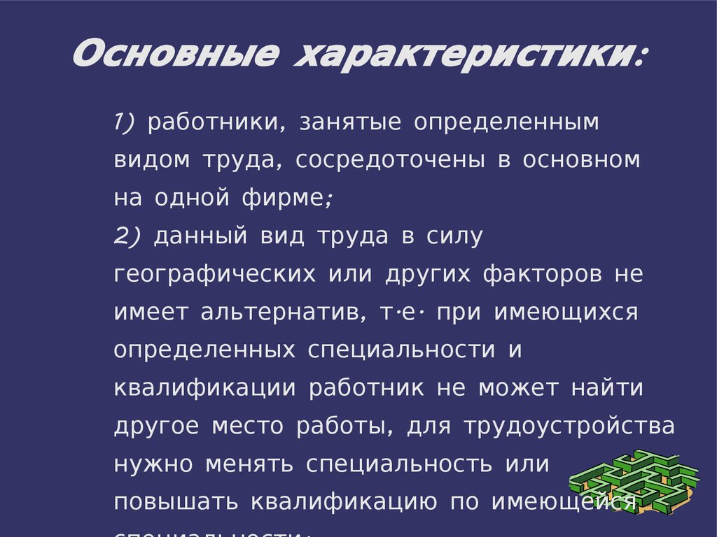 Основные характеристики:1) работники, занятые определенным