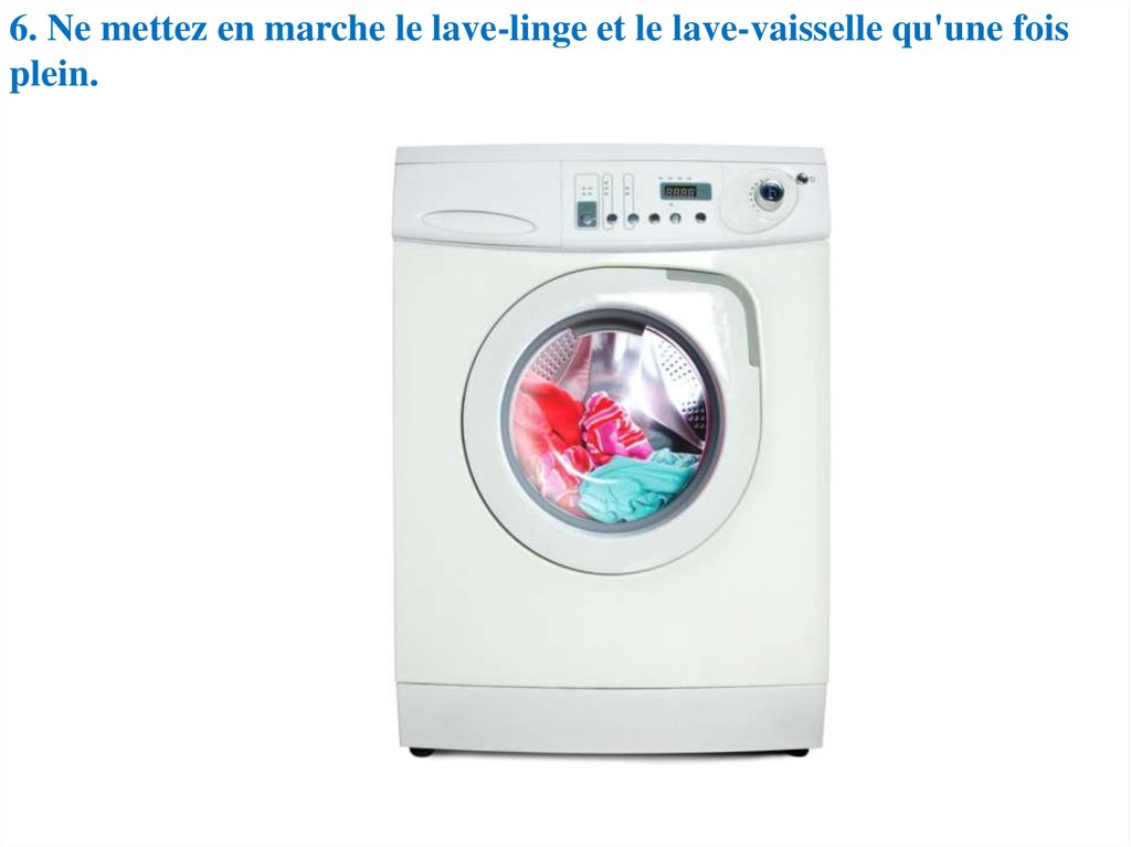 6. Ne mettez en marche le lave-linge et le lave-vaisselle qu'une foisplein.