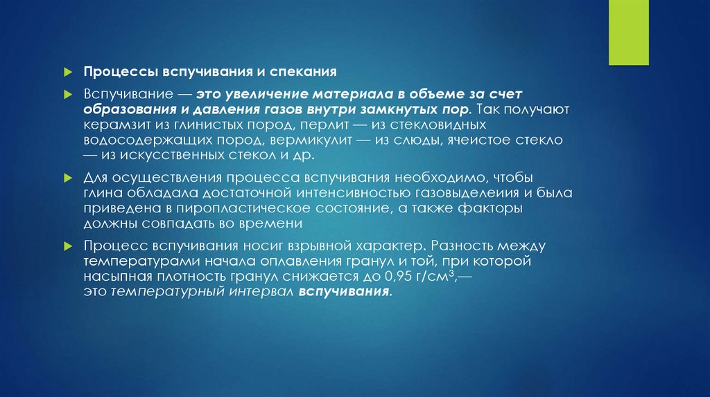 Процессы вспучивания и спеканияВспучивание — это увеличение материала в объеме за счет