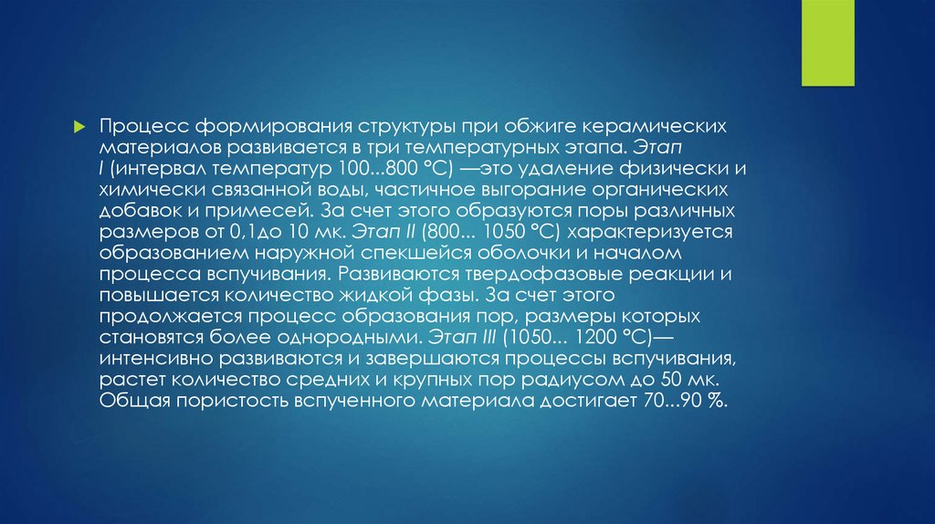 Процесс формирования структуры при обжиге керамическихматериалов развивается в три температурных этапа. Этап