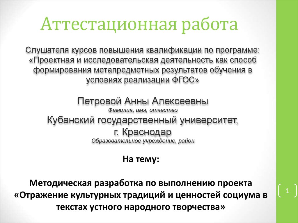Аттестационная работа. Отражение культурных традиций и ценностей социума в текстах устного народного творчества
