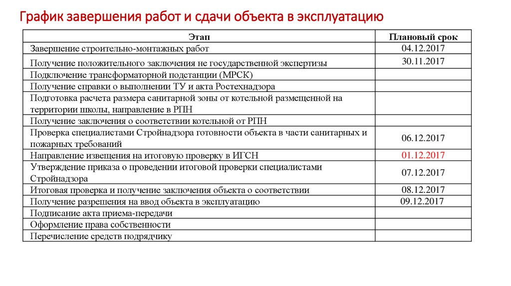 График завершения работ и сдачи объекта в эксплуатациюЭтап