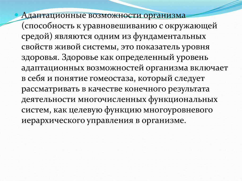 Адаптационные возможности организма(способность к уравновешиванию с окружающей