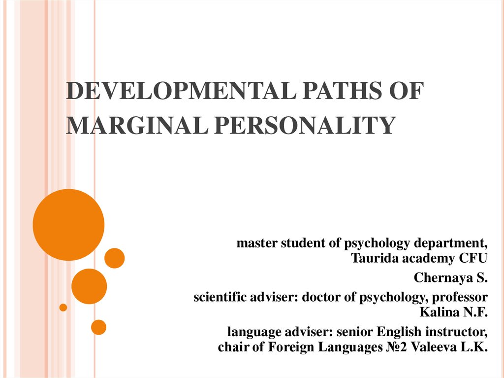 1. DEVELOPMENTAL PATHS OF MARGINAL PERSONALITY