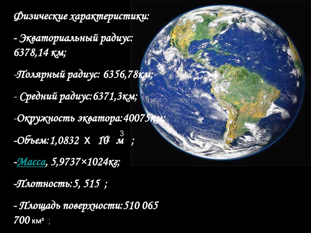 -Ускорение свободного падения на экваторе:9,766 м/с² ;-Вторая космическая скорость :11 180 м/с;