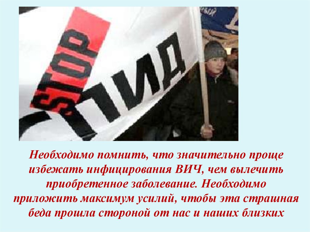 Необходимо помнить, что значительно прощеизбежать инфицирования ВИЧ, чем вылечить