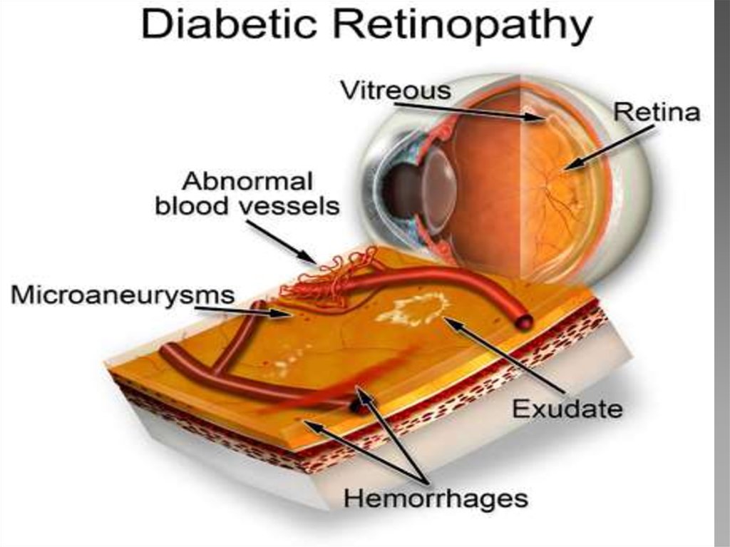 ретинопатии, нефропатии, нейропатии,
