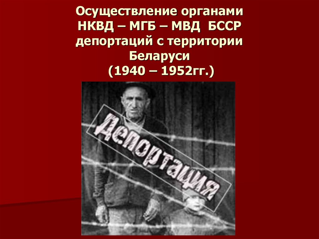 1. Осуществление органами НКВД – МГБ – МВД БССР депортаций c территории Беларуси (1940 – 1952гг.)