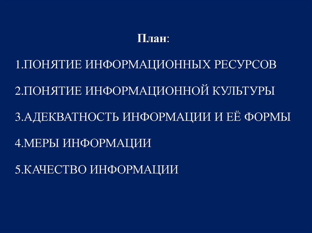 План:1.ПОНЯТИЕ ИНФОРМАЦИОННЫХ РЕСУРСОВ