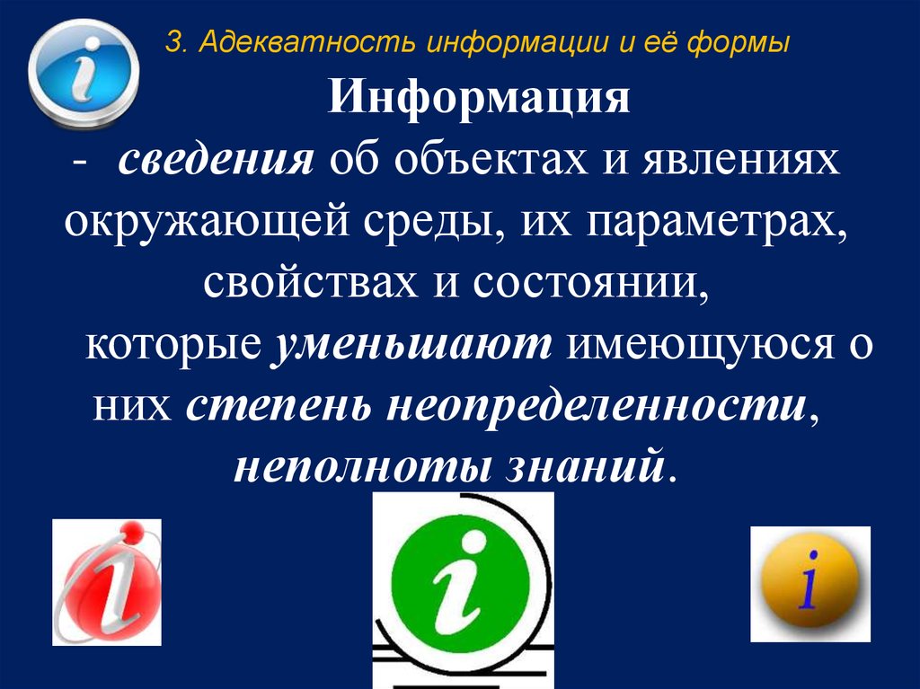 3. Адекватность информации и её формыИнформация