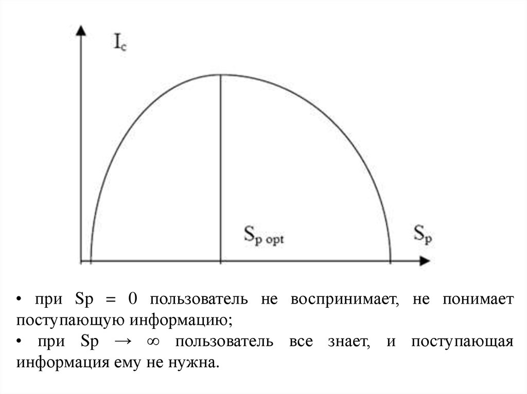 • при Sp = 0 пользователь не воспринимает, не понимаетпоступающую информацию;