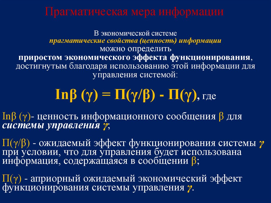 Прагматическая мера информацииВ экономической системе