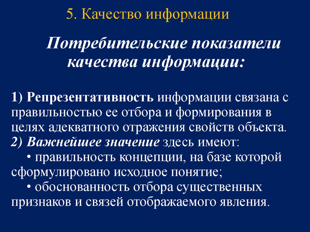5. Качество информацииПотребительские показатели