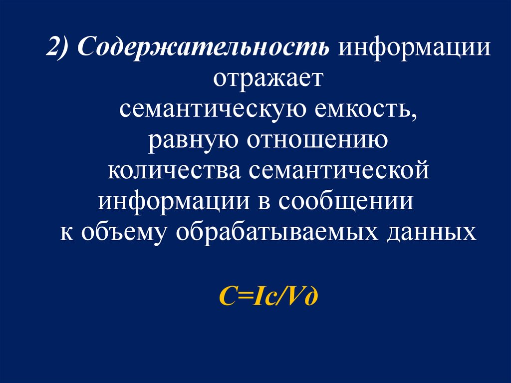 2) Содержательность информацииотражает