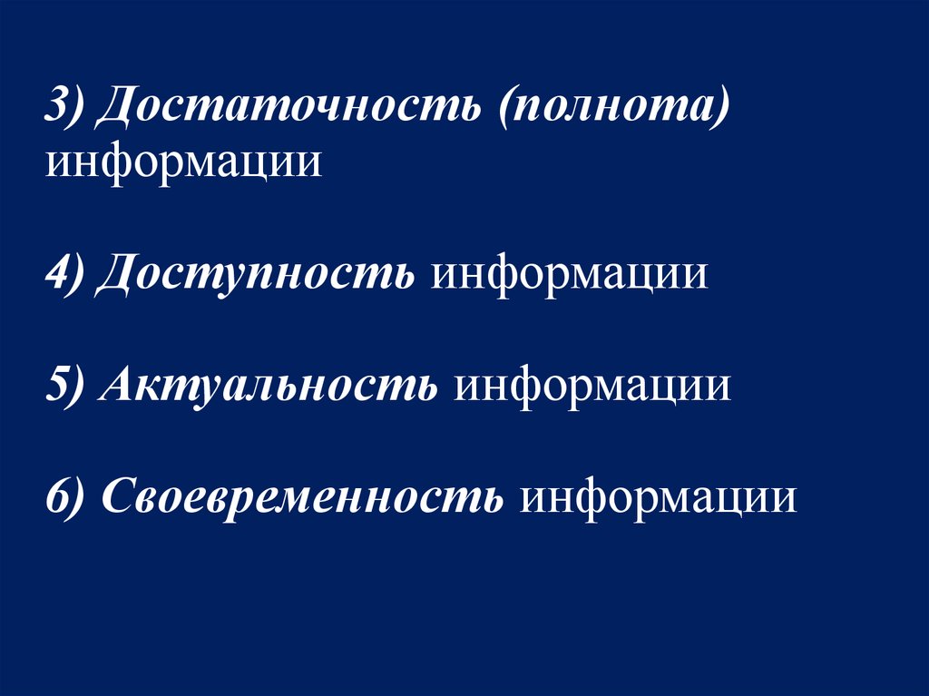 3) Достаточность (полнота)информации