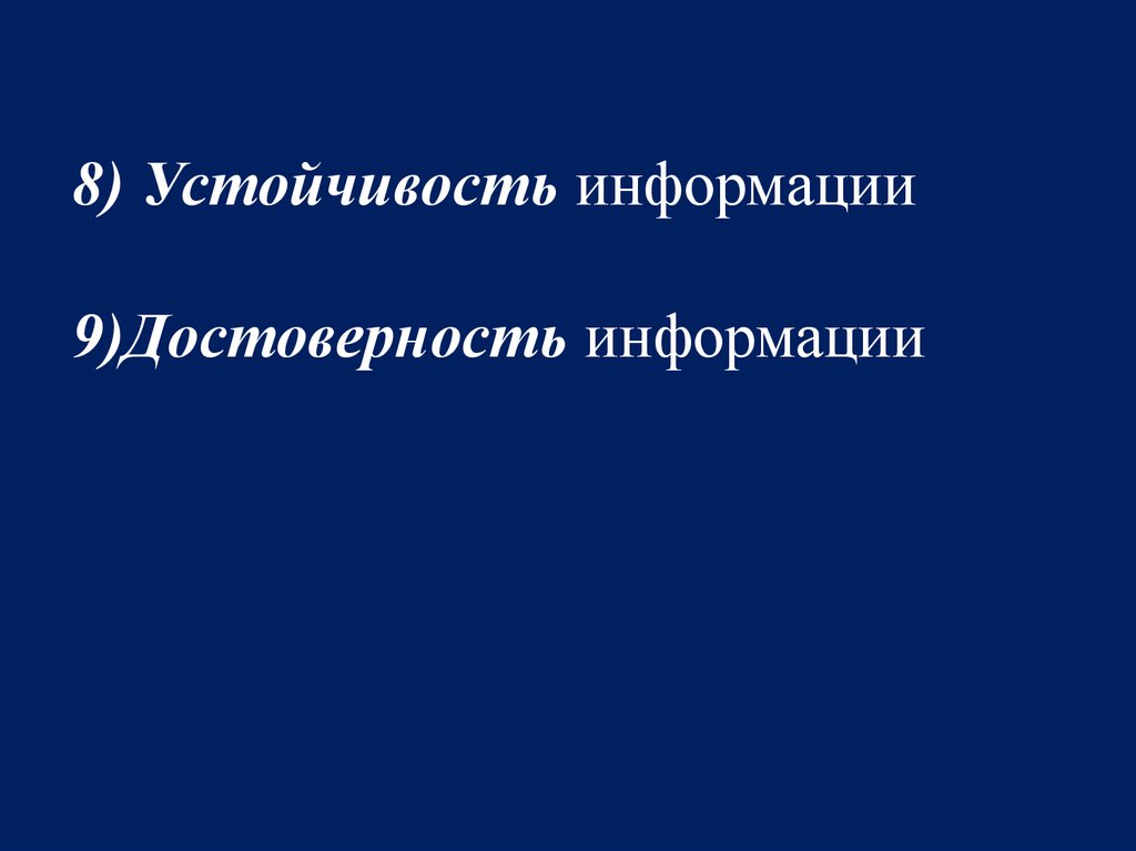 8) Устойчивость информации9)Достоверность информации